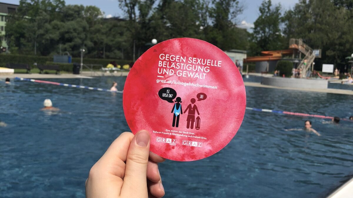 Unter dem Titel „Luisa geht schwimmen“ wurden nun auch die Bäder der Freizeit Graz Teil des „Luisa ist da“-Projektes. Wenn Sie sich bei einem Schwimmbadbesuch aus einer unangenehmen oder brenzligen Situation befreien möchten, können Sie sich mit der Frage „Ist Luisa da?“ an das Personal wenden und erhalten Hilfe. Schnell und einfach.