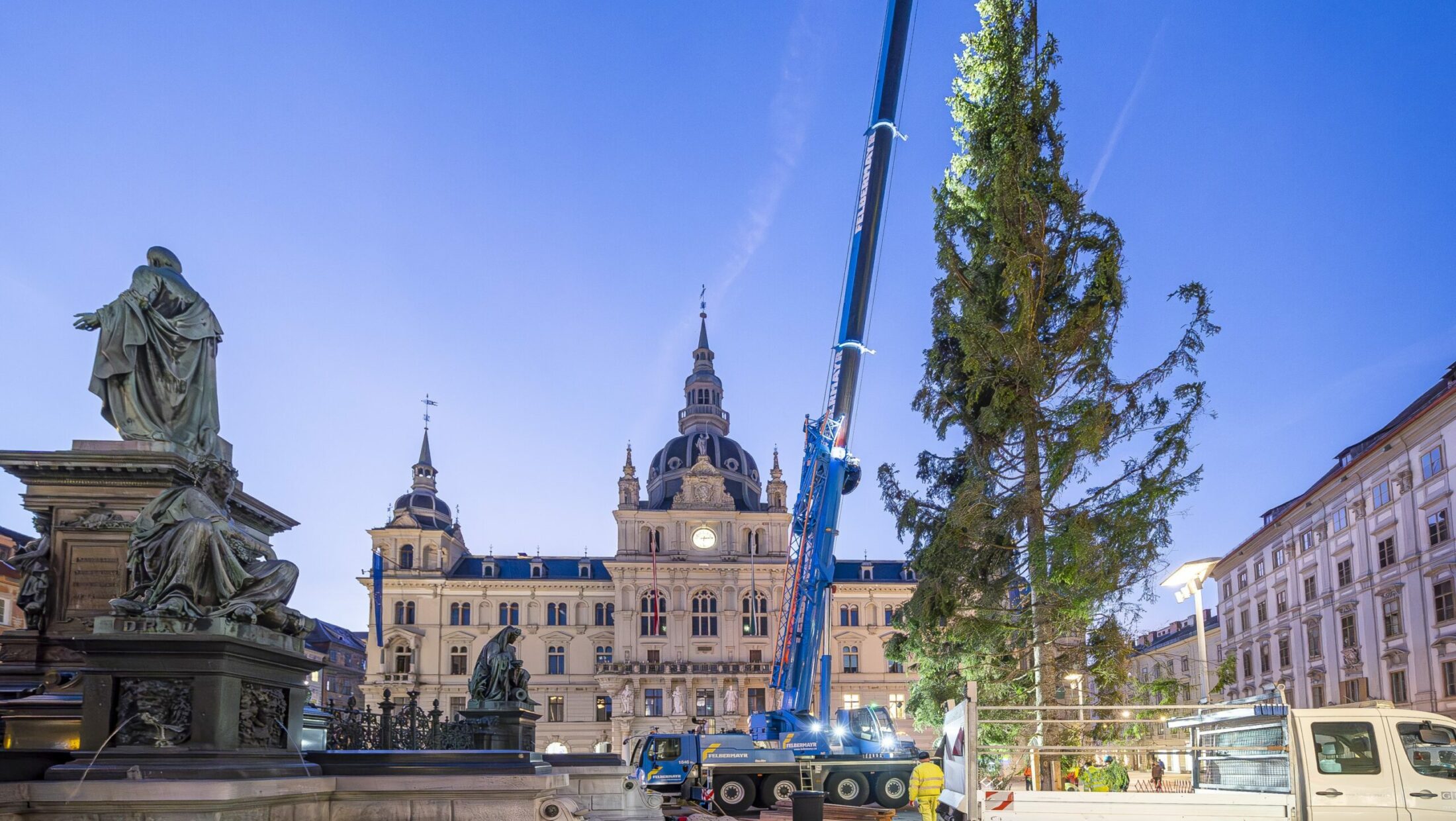 Der Advent in Graz lockt alljährlich ein Millionenpublikum in die steirische Landeshauptstadt. Herzstück dabei ist unter anderem der Christbaum, der am Montag, 4.11., in den frühen Morgenstunden am Grazer Hauptplatz angeliefert und aufgestellt wurde. Die Gemeinde Altaussee spendet diesen Christbaum heuer wieder.