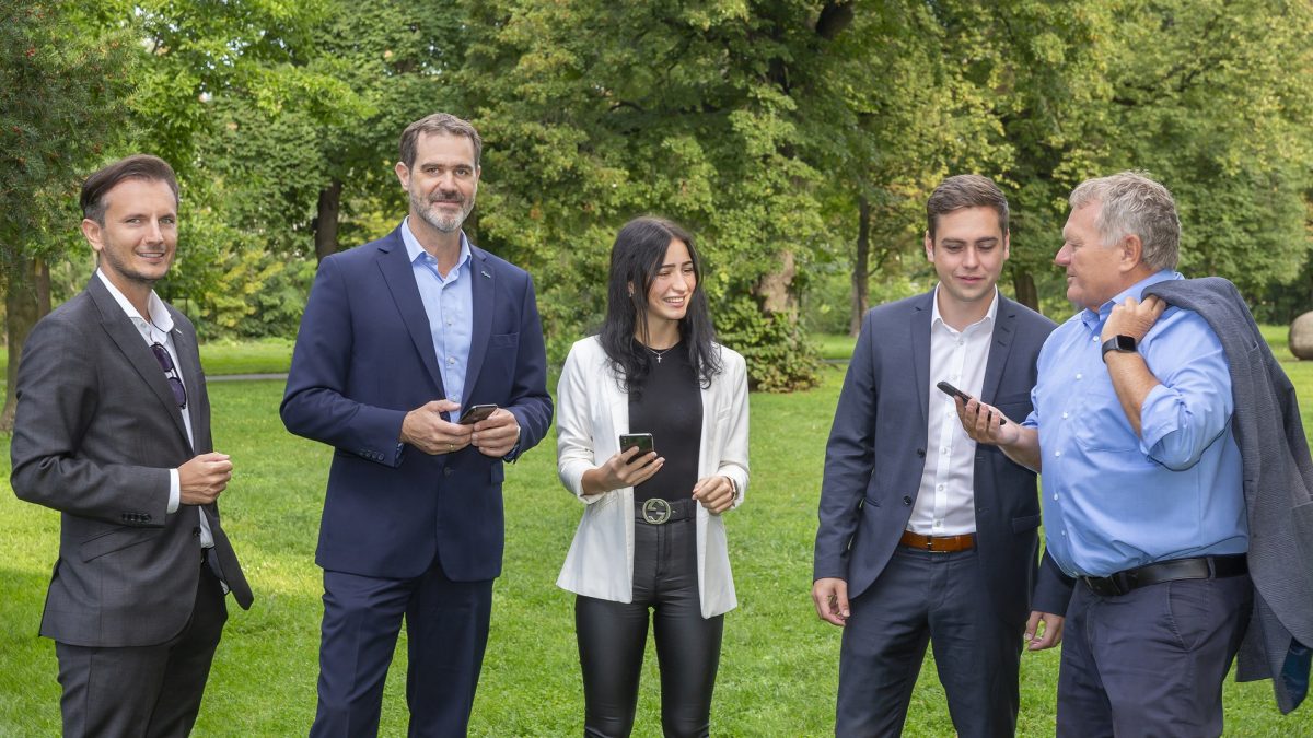 (Foto: Holding-Marketingchef Richard Peer, Citycom-GF Bernd Stockinger und Holding-CEO Wolfgang Malik beim neuen WLAN-Standort Augartenpark. freeGrazWifi ist insbesondere ein Angebot für die Jugend.)