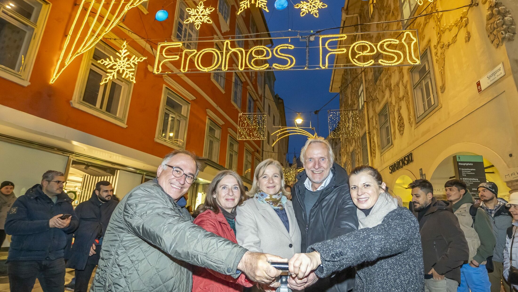 Musikalisch umrahmt vom Kinderensemble des JJF-Konservatoriums und Bläsern der Postmusik Graz schalteten Bürgermeisterin Elke Kahr, Wirtschaftsstadtrat Günter Riegler, Citymanagerin Verena Hölzlsauer und Energie Graz-Geschäftsführer Boris Papousek heute in festlicher Atmosphäre am Fuße der Sporgasse die Grazer Weihnachtsbeleuchtung offiziell ein. Um den Auftakt in die Adventzeit besinnlich und stimmungsvoll zu gestalten, hat das Citymanagement in Kooperation mit der Volkskultur Steiermark und dem steirischen Volksliedwerk in die Sporgasse und anschließend zu einer Fahrt mit der festlich geschmückten Adventbim geladen.