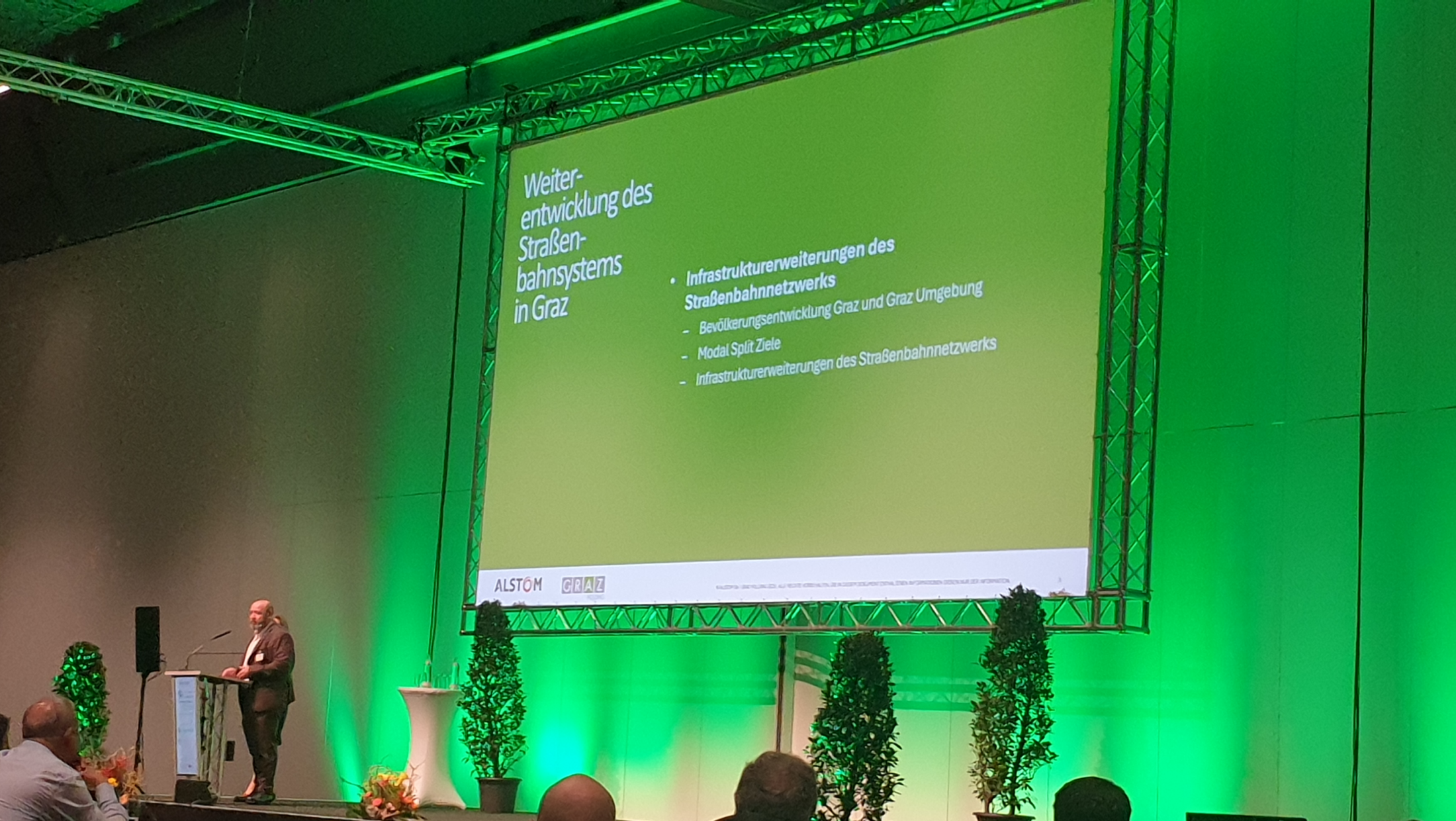 Perz präsentierte gemeinsam mit Lilian Meyer, Managing Director Alstom Österreich, die Weiterentwicklung des Straßenbahnsystems in Graz. Im Fokus des Vortrags standen Infrastrukturerweiterungen des Straßenbahnnetzes wie der aktuell laufenden Innenstadtentlastung mit der „Neutorlinie“ sowie die innovative Flexity Graz Straßenbahn (Foto unten) und deren Vorzüge.