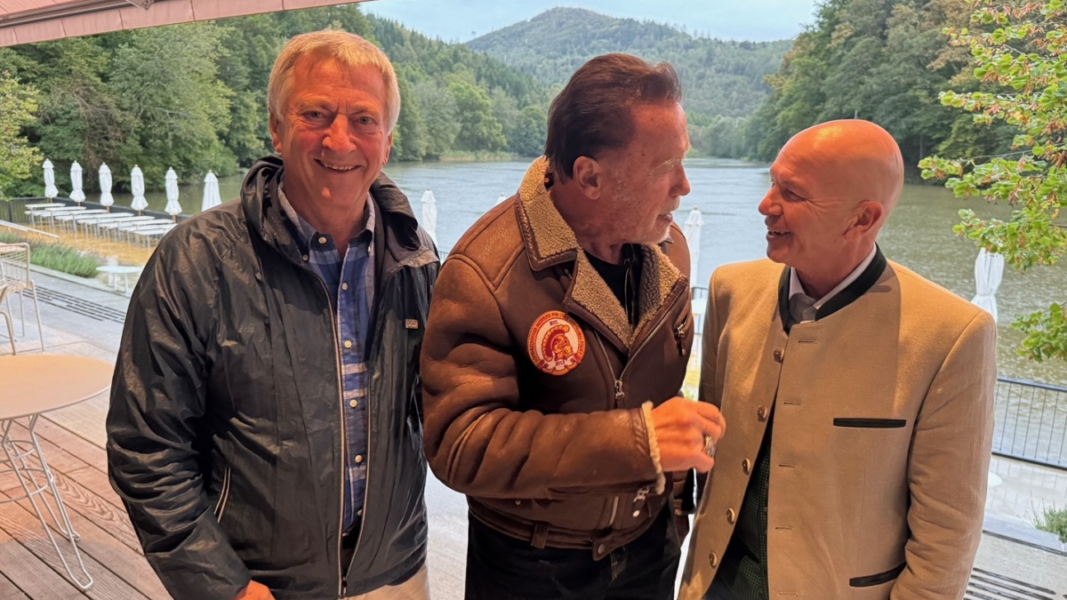 Weltstar Arnold Schwarzenegger wuchs bekanntlich in Thal auf. Der Thalersee war der „Swimmingpool“ seiner Jugend – und der Ort, in dem er in einem Ruderboot seiner Ex-Frau und Kennedy-Familienmitglied Maria Shriver den Heiratsantrag machte. Gestern (16.9.) stattete Schwarzenegger dem Thalersee und dem von unserer Freizeit verpachteten Restaurant „Thaler See Garten“ einen Besuch ab.