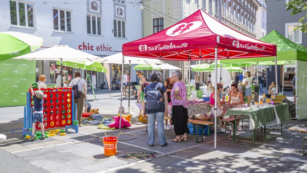 Los geht es am 6. August auf dem Färberplatz, gefolgt vom Tummelplatz (13.8.) und dem Mariahilferplatz (20.8.), bevor es am 27. August auf den Grazer Hauptplatz geht. Mit im Gepäck ist auf allen vier Plätzen jeweils von 11.00 Uhr bis 17.00 Uhr ein von Musik Zentral organisiertes Musikprogramm mit Livemusik von unterschiedlichen Bands und Musiker:innen sowie Unterhaltung und Showacts für Kinder von Grazer Spielmobilbetreibern (Kinderschminken, Zaubervorführungen, Kasperltheater uvm.). Für Abkühlung und Entspannung sorgen Sonnenschirme und Liegestühle sowie Pavillons speziell für die kleinen Gäste. Auch erwachsene Besucher:innen können sich auf besondere Veranstaltungshöhepunkte freuen, die die Holding Graz gemeinsam mit ihren Sponsoring-Partner:innen und dem Verein „Echt Graz“ organisiert.