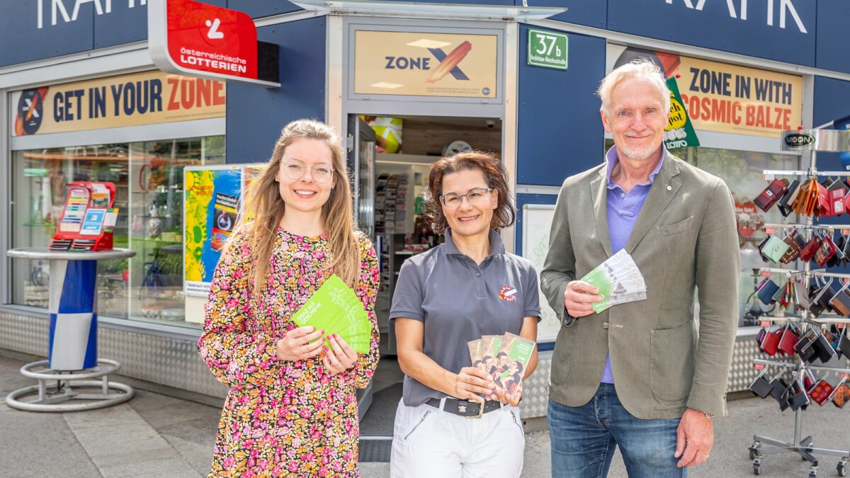 Am Foto (v.l.): Carola Ebert (Abteilungsleitung Vertriebsmanagement Holding Graz), Trafik-Inhaberin Lucia Wahlmüller, Wirtschaftsstadtrat Günter Riegler