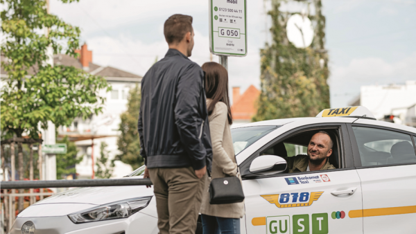 ein Sammeltaxi als zusätzliches Angebot ergänzend zum Schienenersatzverkehr zur Verfügung, nachdem GUSTmobil Graz den Betrieb eingestellt hat.