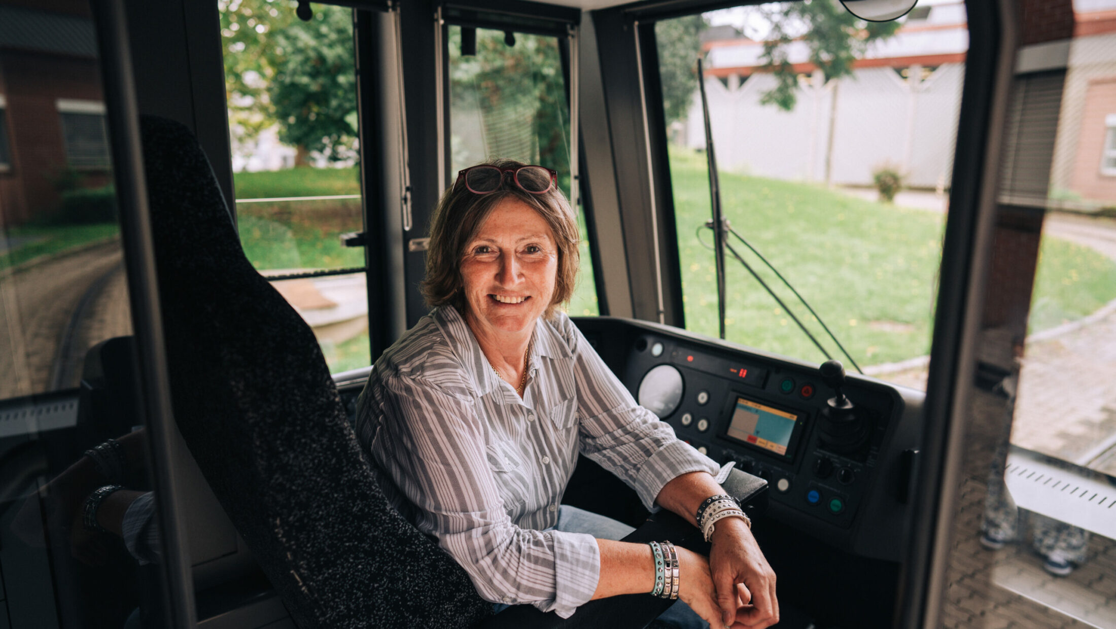 Theodora Acham, die erste Grazer Straßenbahnfahrerin heute.