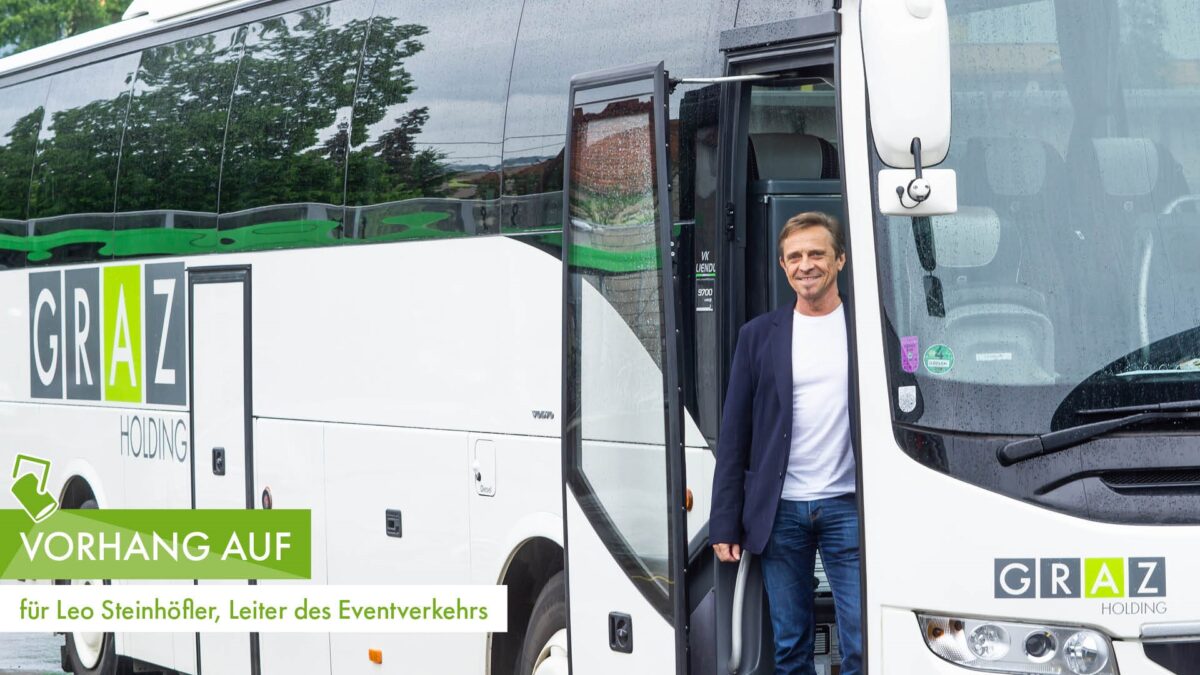 Mehr als 170 Busse haben die Graz Linien in ihrem Streckennetz der steirischen Landeshauptstadt im Einsatz. Vier weitere Busse sind aber ganz besonders: Drei sind komfortable Reisebusse und der vierte ist der beliebte Cabriobus. „Chef“ über diese vier Fahrzeuge ist Leo Steinhöfler, Leiter des „Eventverkehrs“. Wir holen ihn diesmal vor den Vorhang!